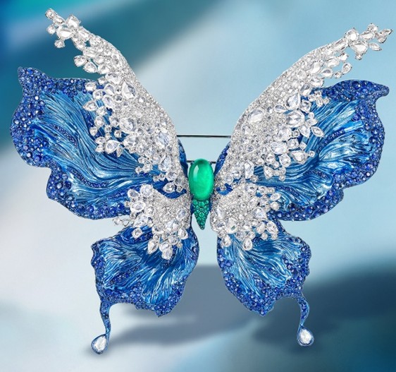 ‘Monarch Butterfly’ brooch in titanium with a Colombian emerald centre stone from Joywith Jewelry