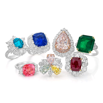 Statement rings with rare fancy colour diamonds and coloured gemstones by Kothari