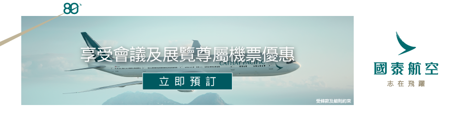 一直以港為家的國泰航空很高興能為 寰亞盛會 | 六月香港珠寶首飾展覽會 的與會參展代表提供特選禮遇。貴為已登記的參展代表及出席者,我們誠意為您及同行旅伴獻上專享的票價優惠,展開更稱心的旅程。您可登入國泰航空會議及展覽推廣專頁並輸入是次展覽會代碼或聯繫當地客戶聯絡中心以此代碼查詢及訂購。
